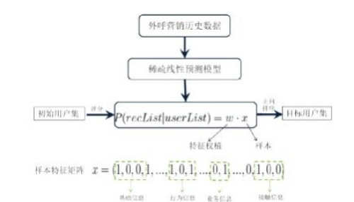 针对外呼营销场景构建“外呼推荐模型”反映用户对外呼渠道接受程度。通过调研评估各种特征,选取100多个原始用户特征,离散化后形成每个样本具有几万个特征的稀疏特征矩阵,基于稀疏线性预测算法进行模型训练建立一套适合外呼推荐的预测模型。