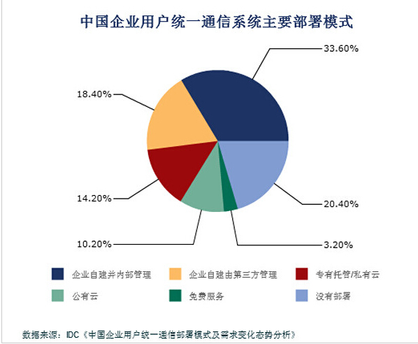 近日,从IDC发布的最新《中国企业用户统一通信部署模式及需求变化态势分析》文件当中获悉,目前中国云计算市场正在飞速发展,其中国内的统一通信系统的部署模式也在发生改变。所谓的统一通信系统包括了IP电话系统、视频会议、协同应用、呼叫中心以及其他统一通信应用等。