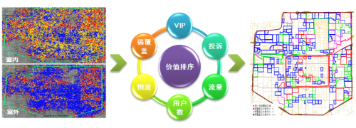 深度覆盖识别一直是困扰各大运营商的难题,在4G精品网建设中,陕西移动创新应用“二分”识别和“6D”价值排序技术,不仅可以对网络覆盖范围内的室内/室外话务和用户进行区分,全面、直观的找出网络存在的弱覆盖;同时通过关联流量、用户、投诉、VIP、倒流等价值考量实现自动打分排序,在网络弱覆盖里再找出价值高地,结合投资情况重点规划建设。