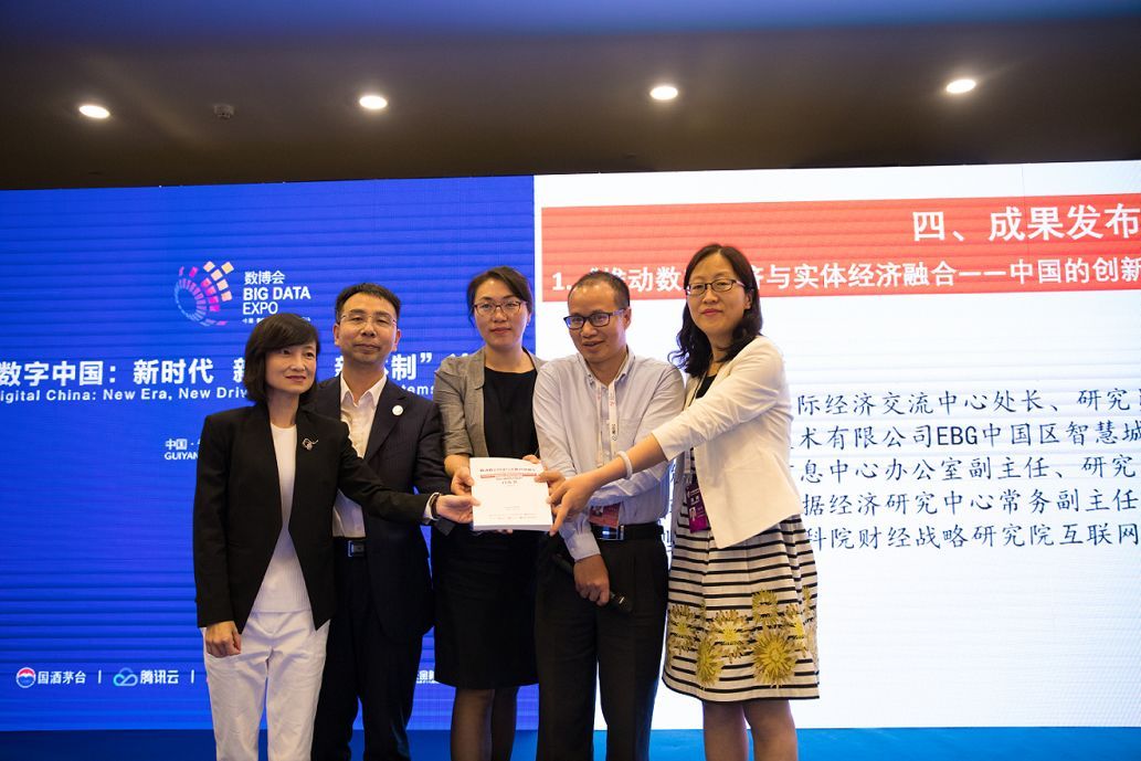 2018中国国际大数据产业博览会5月26-29日在贵阳国际会议展览中心举办。期间华为协办了由中国行政体制改革研究会承办的“数字中国:新时代 新动能新体制”论坛,华为公司战略部副总裁、全球智慧城市解决方案总经理郑志彬发表”数字经济如何改变我们的城市”主题演讲;华为EBG中国区智慧城市业务部副总裁胡芳与中国行政体制改革研究会、中国国际经济交流中心、国家信息中心等机构共同发布了《推动数字经济与实体经济融合——中国的创新与实践2018白皮书》。