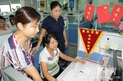 【通信产业网讯】由中国电信建设的“呼叫中心”在无锡纷纷涌现,成为多个行业打造品牌、拓展业务的新领域。一些新成立的呼叫中心招兵买马,减轻了为社会大学毕业生的就业压力。许多大学毕业生的知识面、反应力等综合素质在呼叫中心得到有效的提高和发挥。图为日前,在无锡新区一呼叫中心,大学毕业生小王(坐者)工作三个月已成为同事们学习的服务标兵。(周晓慷)