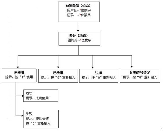 讯众IVR智能语音验证系统:团购券验证流程图