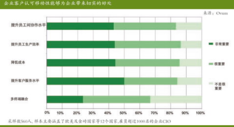 “移动化”的背后离不开统一通信的支持,因为移动办公的前提就是需要随时随地、通过任何设备与上级、同事以及客户保持联系。这其中的关键,主要体现在3个方面:Any Where(任何地点)、Any Device(任何设备)和一致性。所谓“Any Where”,即不论在公司内、旅途中、家中、酒店中,都可以方便高效地进行业务处理与协作沟通。所谓“Any Device”,即支持跨平台的多终端协作,包括市场主流的移动操作系统,如iOS、Android等。所谓一致性,主要体现在两方面,一是在确保终端操作易用性的基础上,最大化用户界面的一致性与操作体验的一致性;二是跨平台终端能力的一致性(语音、消息、数据等),进一步延伸一致性与固定移动融合(FMC)的结合,实现桌面IP终端(包括硬件话机与软件客户端)、使用WLAN的移动设备客户端(如智能手机与平板电脑)以及手机之间的通信无缝切换,使得用户在变换网络环境或者终端设备时,业务能够保持延续,提升移动办公体验的一致性。