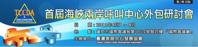 台湾客服中心发展协会首度在海峡对岸厦门市主办的首届海峡两岸呼叫中心外包研讨会4月7日将在厦门国际会议展览中心四楼国际会议厅举办,此次活动由厦门市投资促进局、中国(厦门)国际投资促进中心、呼叫中心与BPO行业资讯网(51Callcenter)、4PS联络中心国际标准组织支持,并由厦门市信息投资有限公司、厦门硕泰商务科技有限公司等优良厂商协办。