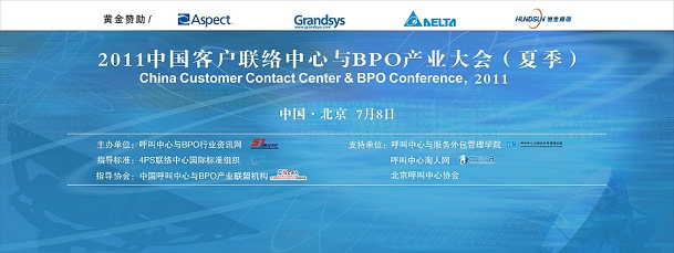 2011年6月27日.北京.51Callcenter消息:2011中国客户联络中心与BPO产业大会将于7月8日(周五)全天在北京新世纪日航饭店(五星酒店)召开,预计将有近千人参加本次大会。会议期间,中国最佳客户联络中心与CRM大奖评选委员会将在北京同期发布2010获奖榜单,并进行2011评选介绍。本次大会由51Callcenter主办,4PS联络中心国际标准组织作为指导标准,中国呼叫中心协会作为指导协会。