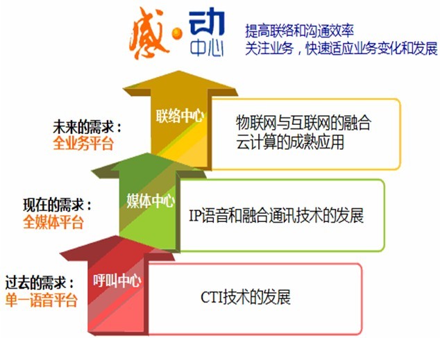 中国改革开放的实践证明,经济社会高速发展的大环境,推动了国内各行业和企业科技水平的巨大发展;同时众多本土化企业的科技进步与创新能力,也将作为中国新经济时代转变发展方式的重要支撑。同样作为IT技术一个分支的企业通讯和呼叫中心(CallCenter)领域,道理也是相通的:可以说业务需求的不断发展是推动呼叫中心技术发展的原始推动力,同时诸如SIP、SOA等技术的发展也使得呼叫中心脱离企业通讯领域独立发展——从过去的电话服务平台发展到支持多媒体、融合全业务的综合联络平台。