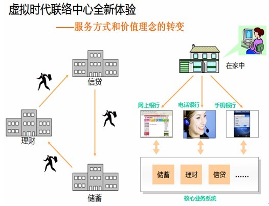 以金融行业为例,融合电话银行和网上银行的电子银行业务,正在替代越来越多的柜台业务,其价值体现在: