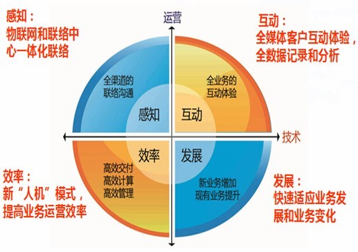 感知:融合全渠道的联络渠道,包括语音、视频、传真、邮件、短信等多种UC通信方式,以及物联网感知方式的一体化融合,全方位感知客户。
