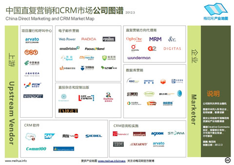 近日,梅花网发布了中国直复营销和CRM市场公司图谱。中国直复营销和CRM市场公司图谱中覆盖了直复营销和CRM直接关联的市场,包括电子邮件营销、直复营销方向代理商、数据库营销、移动营销、CRM软件、CRM咨询和实施,项目履行和呼叫中心等。