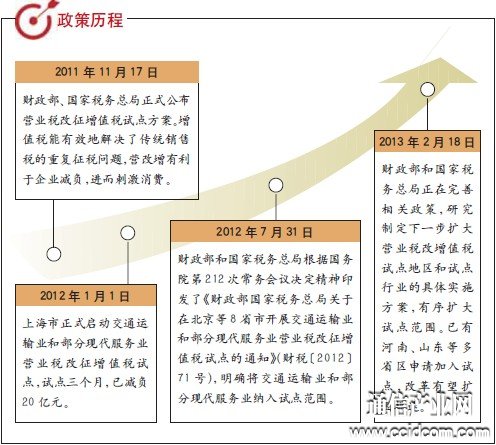 历经一年试点,已扩至12个省市的营改增在2013年迎来进一步扩容,电信业将进入营改增试点范围。据报道,国家税务总局原副局长许善达表示,按照国务院的要求,将会在今年推出铁路运输、建筑安装和电信通讯领域内的“营改增”试点方案。
