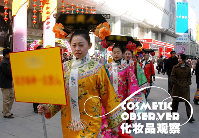 多管齐下的聚客之术确保了来店的人数,而要留住客人接受推销仍有讲究:店外帐蓬下安排了极专业的美容顾问以新式美容仪器免费为每位顾客作准确的皮肤诊断,并提出产品搭配建议;店内待客区还专门为到店的每位顾客现场免费贴上一贴补水面膜,坐着感受产品时便于充分宣讲产品,成交率达到90%多。