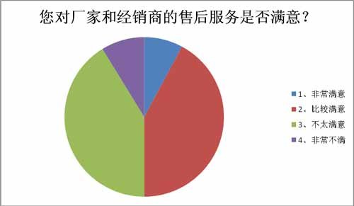 在315来临之际,《12580生活播报-房车汇》对汽车厂商售后服务满意度调查显示,超过5成被调查对象持不满意态度。其中41.3%表示不太满意、8.8%表示非常不满意、42.1%表示比较满意、只有7.8%表示非常满意,不足1成。这一结果表明,目前汽车售后服务现状不容乐观。
