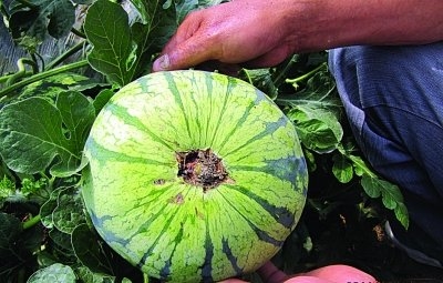 从江苏丹阳“瓜裂裂”现场观察的结果来看,当地的西瓜出现了“畸形”的情况。“就是指西瓜形状不规则,不像我们常见的西瓜,是圆圆的,那里的西瓜长得有些歪,果脐也很大。”而正常的西瓜,果脐应较小。