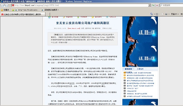 据了解,亚美亚(襄阳)云投资有限公司是AVAYA公司在襄阳新设的股份制投资公司,主要从事高新技术及相关产业的投资业务。目前正在开发投资建设基于云计算架构的呼叫中心项目。