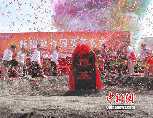 18日,新疆软件园在乌鲁木齐经济技术开发区举行奠基仪式。图为,奠基仪式现场。