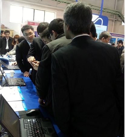 图1:客户在技术人员的指导下现场体验大唐手机智能终端