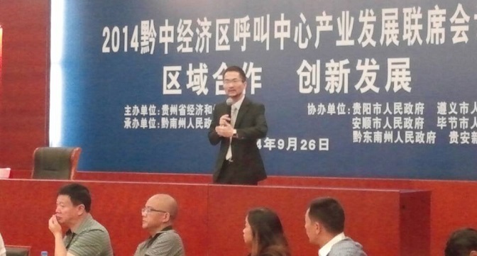 记者,陈燕:9月26日中国呼叫中心与BPO产业联盟主席颜晓滨在2014黔中经济区呼叫中心产业发展联席会上做了专题报告。