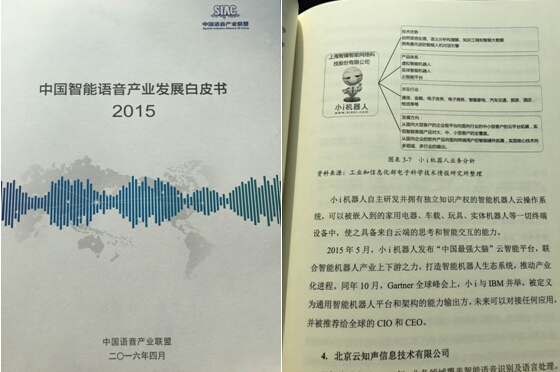在此次年度盛典上,同时发布了中国语音产业年度白皮书——《2015中国智能语音产业发展白皮书》,从产业规模、市场格局、产业环境、发展趋势等维度对中国语音产业进行了全面分析。白皮书指出,语音识别已进入生产力的平稳期,应该以语音为切入点,布局人工智能。而被Gartner定义为通用智能机器人平台和架构的能力输出方,与IBM并举的小i机器人则让中国的人工智能产业应用走在实际前列。