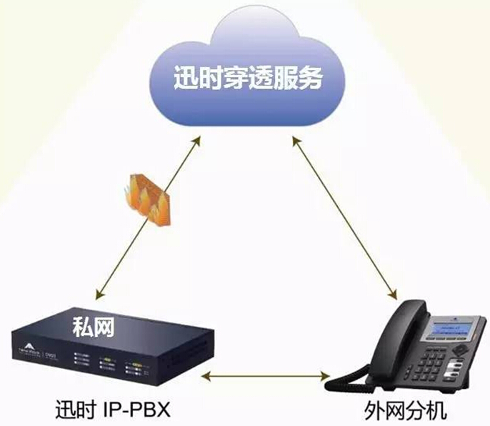 穿透服务给IP电话系统的安装和部署,带来了革命性变化。不但满足各类网络环境,还无需技术人员上门诊断网络、修改客户路由器配置等麻烦。采用迅时NRP系列IP话机,还能真正做到多地电话联网即插即用。