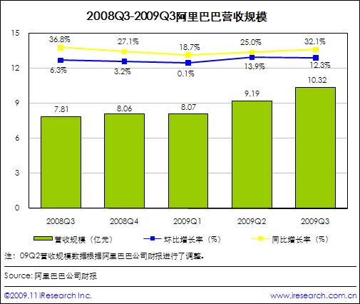 阿里巴巴09Q3营收规模达10.32亿元,稳定增长