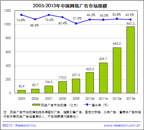 2010年中国网络广告市场规模将加速增长,预计将达303.2亿元