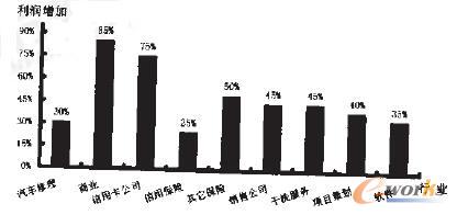 MBNA(America Bank National Association)对美国金融服务业的研究分析指出,若客户流失率降低5%,则企业在今后五年的利润可提高60%。还有研究结果指出,某寿险公司的客户维系率提高5%,其营销成本可下降18%。美国学者曾经就客户流失率下降与利润增加之间的关系进行跨行业的实证研究,结果表明若客户流失率下降5%,则利润可以增加25%~85%不等,如下图3所示。