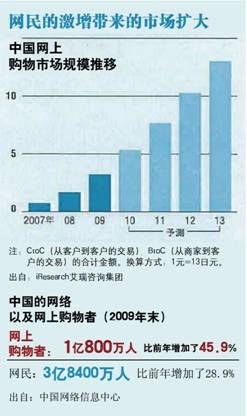 确实,VANCL的发展是基于中国网络的普及这一势头的。中国2009年年末的网民数量与前年同期相比增长了28.9个百分点,共增加了3亿8400万人,3年之间增加了近3倍。进行网上购物的人在2009年就超过了1亿人,市场规模与前年同期相比增加到了3兆2300亿日元。只要这一势头不衰退,预计2013年能达到1万亿元(约13兆日元)。