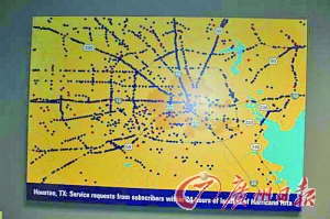 美国OnStar业务副总Tony向记者介绍,2005年丽塔飓风登陆时,休斯顿地区的手机信号中断,但OnStar系统却依然能够运行,通用公司立即开放了飓风地区所有车辆的电话功能,可以让所有开通用车的人往外通讯。从图上看,可以清楚地看到当天有多少人使用了该项服务。为此,当时的美国总统布什还写了一封亲笔签名的信,以表彰OnStar公司在飓风中作出的贡献。
