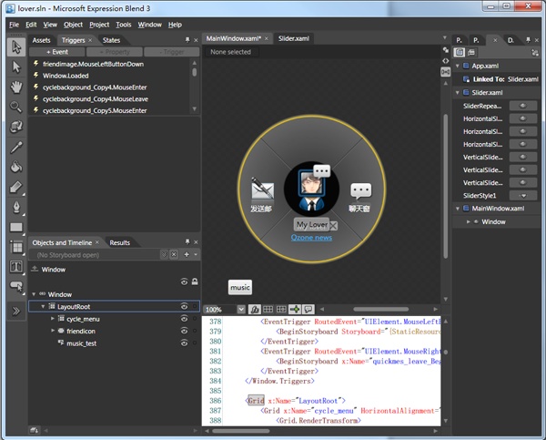 之前已经有所介绍,QQ 概念版是在WPF Blend平台下开发的,这个平台下开发一个好处就是设计师设计的原型可以直接给到技术人员进行实际开发,目前QQ概念版界面上可视的交互以及视觉表现很多都是有我们设计师提供原型开发模型给到技术人员,再由技术人员加以技术内容实现而生成的,当然这个过程就对设计师提出了更高的要求,给到技术人员的不能只是静态图片,而是带有操作性的原型。在设计的过程中,需要规范化控件模块,使得研发更加便捷。一个很简单的button也是需要无数的事件以及状态的设计,最终给到技术人员的就是一个控件和实体的界面原型,所以这个过程对我们设计师来说还是满煎熬的,我们除了为版本设计一些原型DEMO,还会尽量把之前脑暴的一些概念沉淀下来做为下一波脑暴的应用点,将会作为我们设计的储备资源。