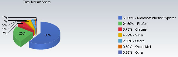 NetMarketShare数据显示,今年4月份,IE市场份额降至59.95%,这是微软浏览器市场份额首次跌破60%。