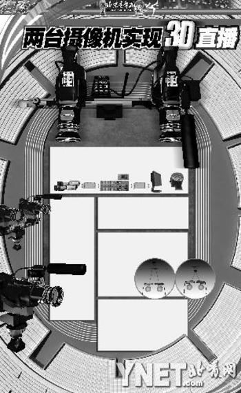 在普通的足球赛事电视直播中,通常要在球场的各个位置设置10个以上的摄像机位,而在转播最为规范和先进的德甲赛场,直播机位会达到17个,本届世界杯赛场设置的机位则将会达到30个左右。3D直播并不是要改变原有的普通直播或高清直播技术,而是要在一个直播机位上放置两台3D摄像机同时进行拍摄,这两台摄像机要模拟人的左右眼的不同视角来拍摄两个画面,在拍摄过程中镜头可实现全程变焦操作,自动校正各种误差。3D直播在整个球场不必设置30个机位,以本次南非世界杯为例,将用7组机位14台摄像机来进行拍摄。
