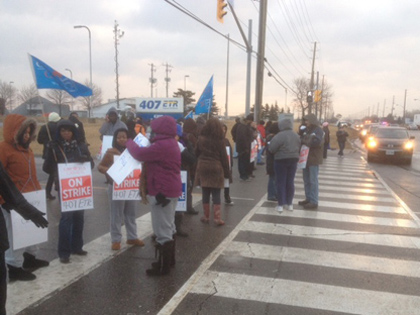 周三早晨7点,将近100名受雇于407高速公路ERT的员工开始在Woodbridge设立警戒线,罢工的员工有客服中心及电话中心人员。