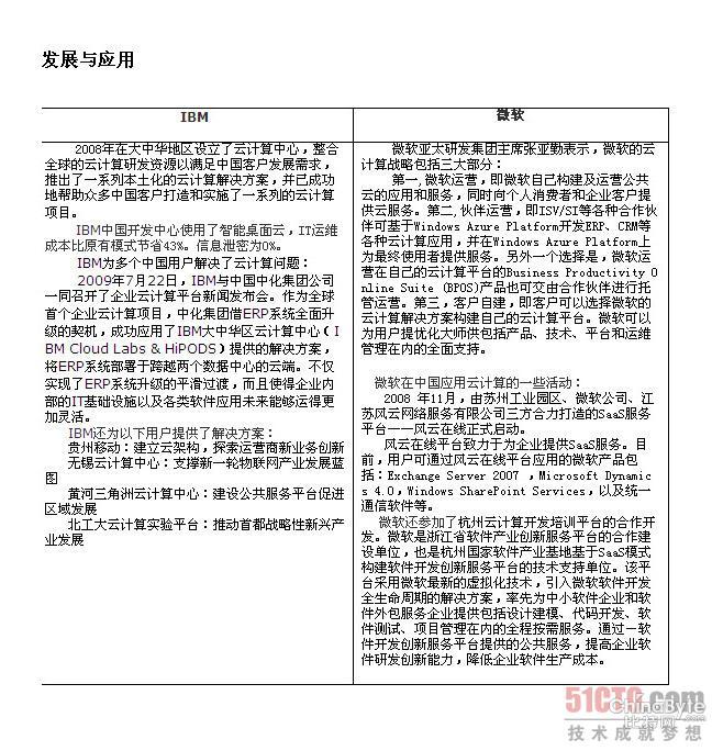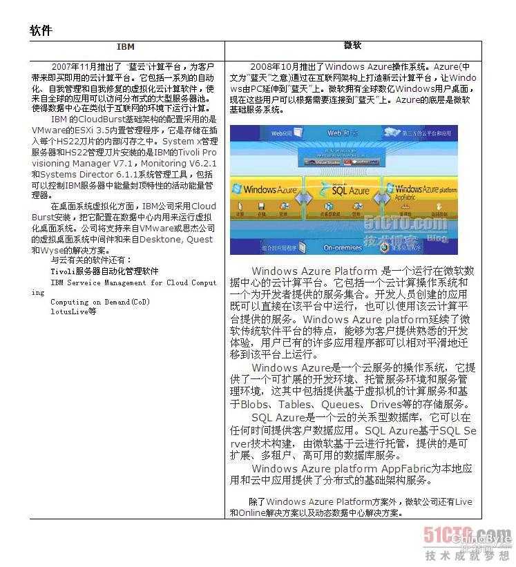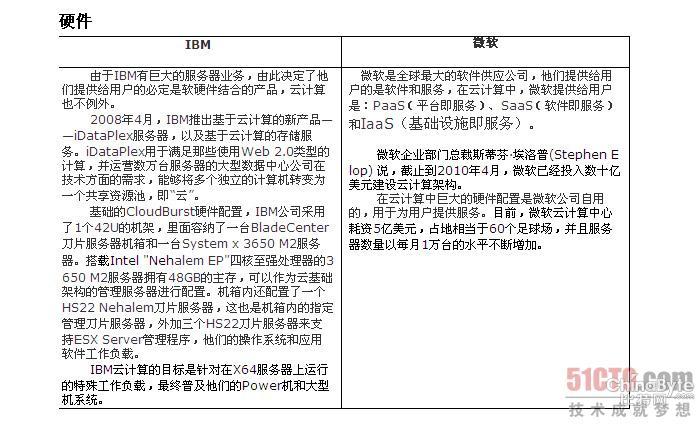 本人认为,云计算领域潜力最大的是IBM公司和微软公司,这两家公司以不同的方式进入云计算领域,下面作一简单的比较: