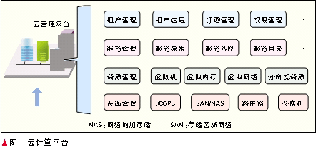 资源池由云管理平台实现统一的管理、调度和监控,涉及云平台的合理使用和维护管理。云管理平台共分为4个管理层面,分别为:设备的管理、虚拟资源的管理、服务的管理和租户管理。