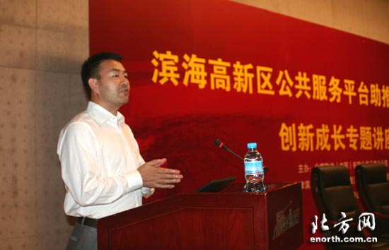 8月26日消息,滨海高新区公共服务平台助推科技型企业创新成长讲座今天在海泰大厦开讲,滨海高新区管委会副主任刘力出席本次讲座,金蝶友商网政府及平台合作事业部总经理马学峰为天津的成长型中小企业带来了SaaS服务模式以及云计算服务平台理念。
