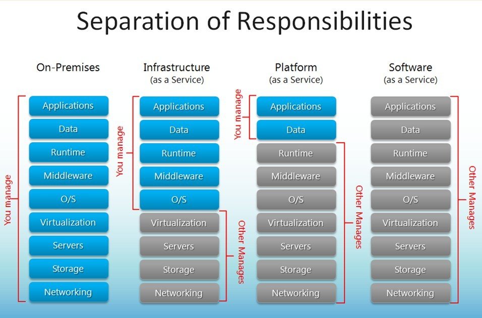 云计算可以让你通过月租的形式获得你想要的服务。如上图所示,SaaS软件即服务可以提供APP应用的租赁服务;PaaS平台即服务可以提供除APP应用以外的其他租赁服务;IaaS基础设施即服务可以提供硬件租赁服务。