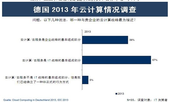 对于德国企业来说,云计算早已成为一个无法回避的问题。调查数据反映了云计算在企业策略和IT策略中的地位,具体来说就是云计算是否融入了企业策略和IT策略,融合的程度如何,参与调查的对象是正在使用、正在引入以及计划引入云计算的德国企业中的IT决策者。