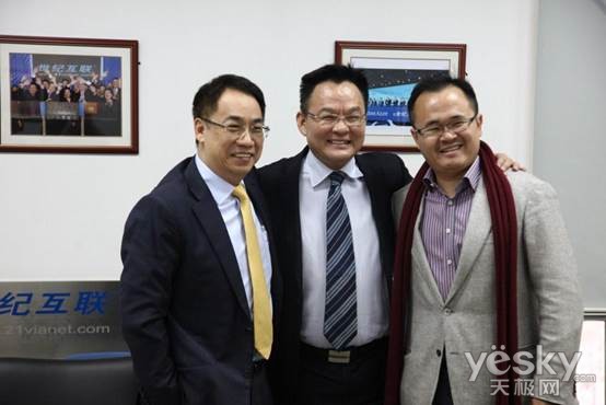 【图:世纪互联云事业部总裁柯文达(左)、世纪互联CFO萧尚文(中)、