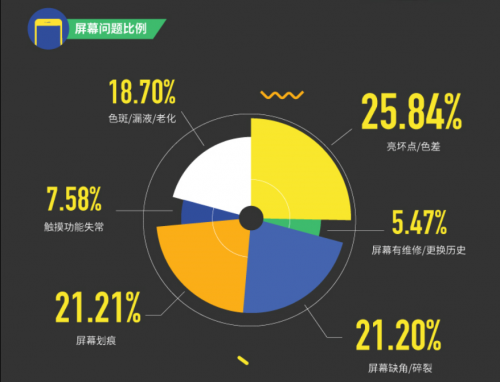 亮坏点、色差与划痕不构成影响使用、更换新品的主要因素,而碎屏则是会影响使用体验重要问题。目前手机更新换代速度快、用户生活水平的逐渐提升、换屏维修时间成本较高等等,构成了女性在碎屏后直接换新的因素。