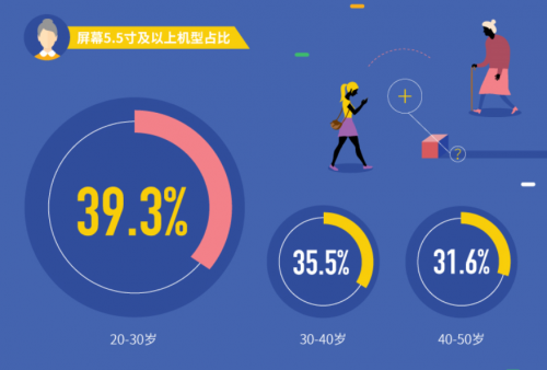 其中20— 30 岁的女性用户更加钟情于苹果,在该年龄段回收榜的前十名中,iPhone回收量是前十名总量的79.5%。其中,大于等于5. 5 寸的大屏手机占据前十名回收总量的39.3%;