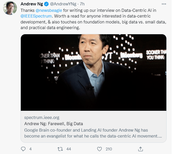 最近,在接受IEEE Spectrum的采访中,他谈到了对基础模型、大数据、小数据以及数据工程的一些感悟,并给出了发起“以数据为中心的AI”运动的原因。
