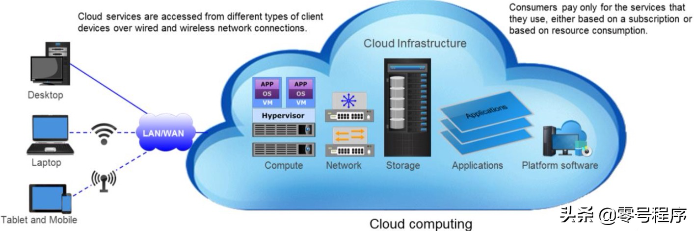 大家可以把云计算类比于电力等公用事业服务。 你只需要将电器插入插座,然后打开即可使用电,而不需要去了解电是如何产生或者分配的; 类似的, 对于云用户来说,云是IT基础设施,你可以从这个基础设施中租用IT资源作为服务, 并最终为改服务付费,而无需了解资源的产生和分配,更无需承担IT资源相关的风险和成本;消费者只需为他们使用的服务付费即可。