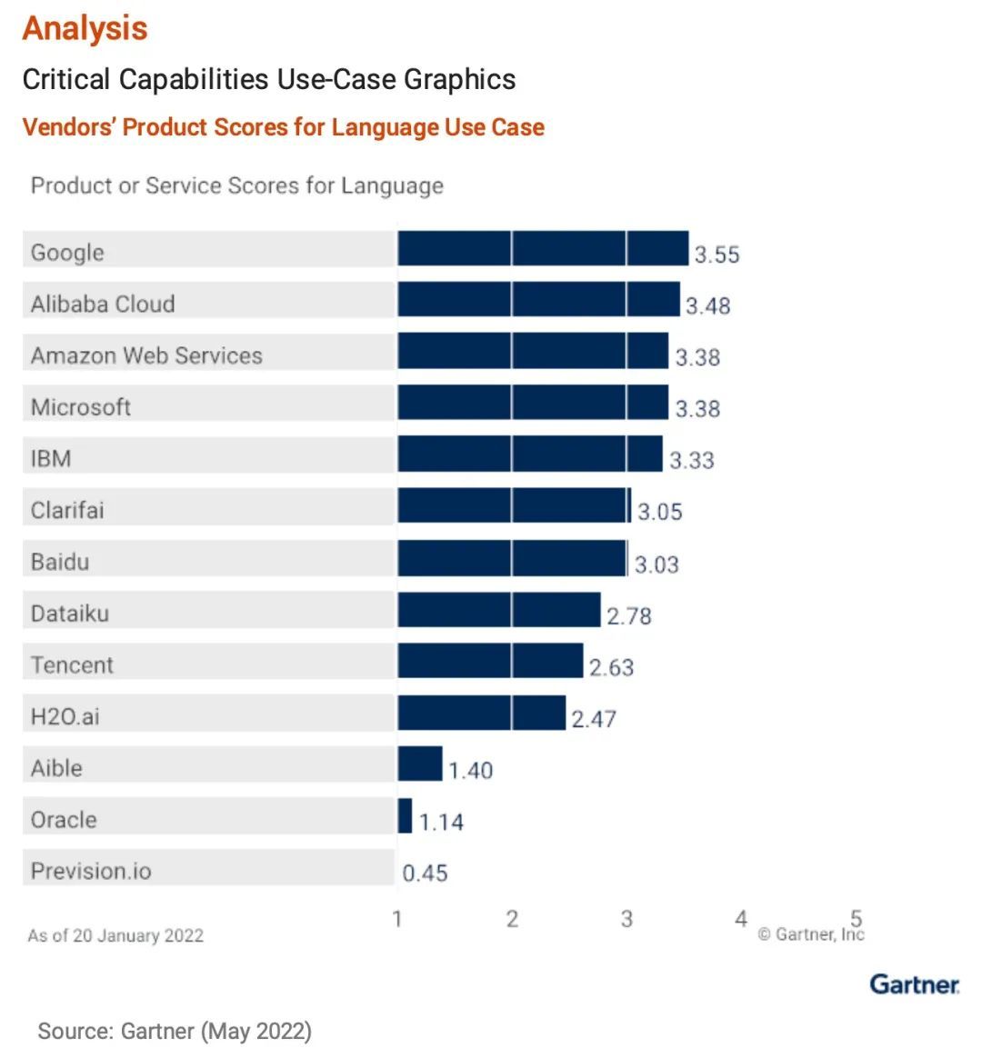 作为知名的市场分析机构,Gartner早早嗅到了这一趋势,他们从2020年就开始发布《云AI开发者服务关键能力报告》,在Gartner看来,AI与云的结合将愈加密切,AI云服务的能力也将成为AI产业的重要指标。