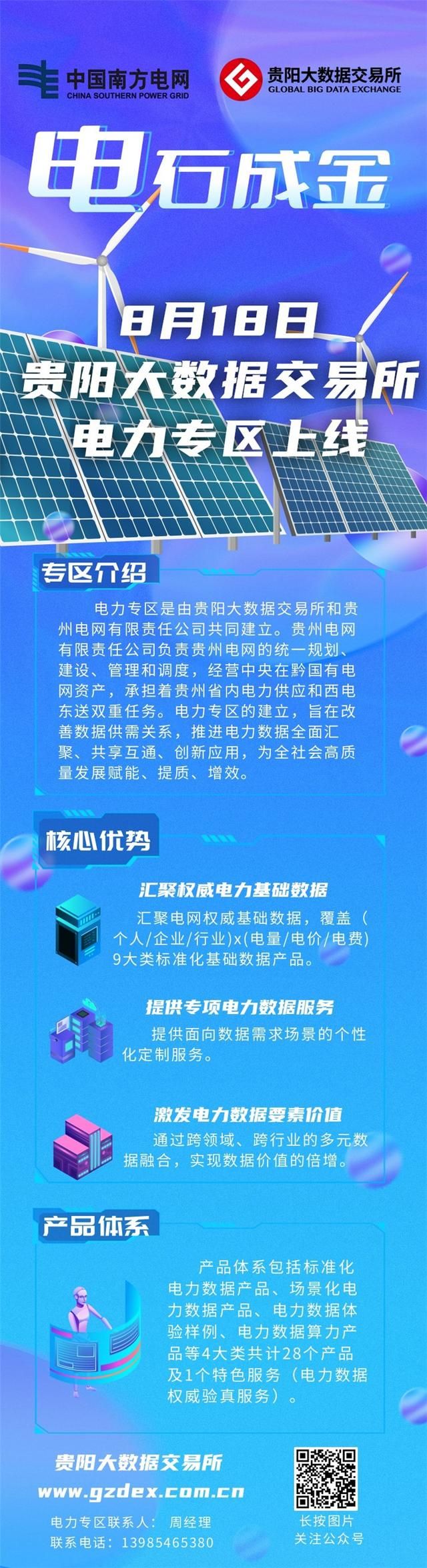 据了解,“电力专区”由贵阳大数据交易所和贵州电网公司共同建立。该专区产品体系包括标准化电力数据产品、场景化电力数据产品、电力数据体验样例、电力数据算力产品等4大类共计28个产品及电力数据权威验真服务1个特色服务,不仅适用于企业及个人经营情况分析、信用评价分析,还具有区域经济发展分析等多场景应用,不断提供“小微企业景气情况分析”、“城乡协同发展指数”、“企业复工复产分析”等精准、细致、实用的经济发展分析产品。