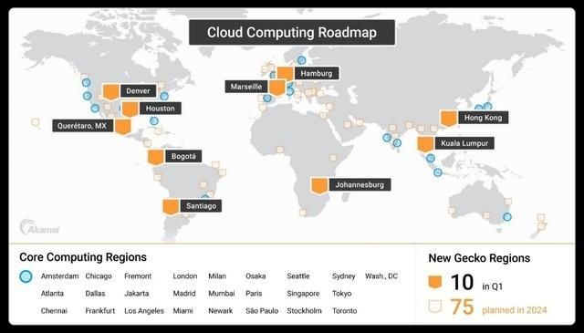当然,在整个计划的推进方面,Akamai也为Gecko推出了快节奏且务实的路线图,具体来说,第一阶段的目标是在年底之前将支持虚拟机的计算融入100座城市。2024年,Akamai已在中国香港特别行政区、马来西亚吉隆坡、墨西哥克雷塔罗和南非约翰内斯堡以及没有集中式超大规模提供商运营的城市(例如,哥伦比亚波哥大、美国科罗拉多州丹佛、美国德克萨斯州休斯敦、德国汉堡市和法国马赛)部署了新的Gecko架构区域。Akamai计划在第一季度结束前在智利圣地亚哥部署第10个Gecko区域。除了这10个新的Gecko位置及现有的25个核心计算区域外,Akamai还打算在接下来几年内将其全球云计算能力扩展到数百个城市。