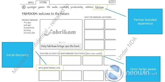 | 昨天一份关于Windows 8的文档在网上曝光,根据这份资料,微软将为Windows 8提供专门的在线商店Windows Store for Windows 8,它类似于向Windows Phone 7提供的Windows Marketplace在线商店。 这个应用程序商店可以帮助用户搜索并下载可信任的应用程序,从Windows Store那里,“消费者可以下载他们需要的应用程序,而且这些应用程序都有安全保障,他们可以放心地在任何Windows 8设备上运行。” 消费者可以在网上访问Windows Store搜索应用程序,也可以在Windows 8本地的Windows Store中进行相关搜索。微软还提供了很多细节计划,帮助开发人员向用户推广其产品,在保证产权的前提下为开发人员带来透明的真正的利益。 根据已知信息推断,Windows Store是微软的云计算软件服务,其服务和分发模式有可能建立在Windows Azure云计算平台上。