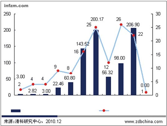 | 2001-2010年12月中旬中国移动互联网行业各年度投资情况情况 来源:清科研究中心 |