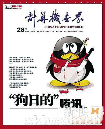 ●讨论由头行业刊物《计算机世界》日前发行的最新一期刊物在社会中引起轩然大波,“狗日的腾讯”五个大字被赫然印刷在其封面上,腾讯公司于次日凌晨第一时间发表公司声明,表示《计算机世界》如此的恶意攻击行为,将会为其带来严重的后果。仔细阅读文章不难发现,文章作者不但对腾讯公司一直以来插足各互联网领域产品竞争行为的不满情绪,更是在文中明确表示“腾讯公司一直在模仿,从来不超越”。值得一提的是,文章作者的观点得到了如百度CEO李彦宏、联众网创始人鲍岳桥、美团网创始人王兴等互联网企业巨头的集体声援,他们一致认为腾讯在业内处处树敌并已经激起公愤。