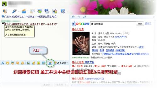 图1 QQ2010正式版SP1提供五个划词搜索入口 迅速提升搜索效率