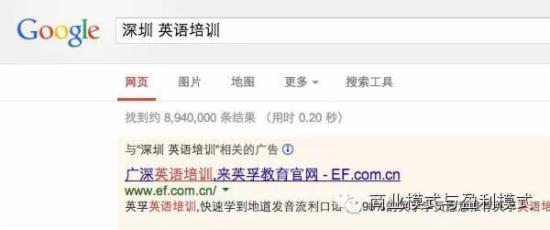 上图:搜索“深圳 英语培训”,Google给出了一些精准的广告信息。